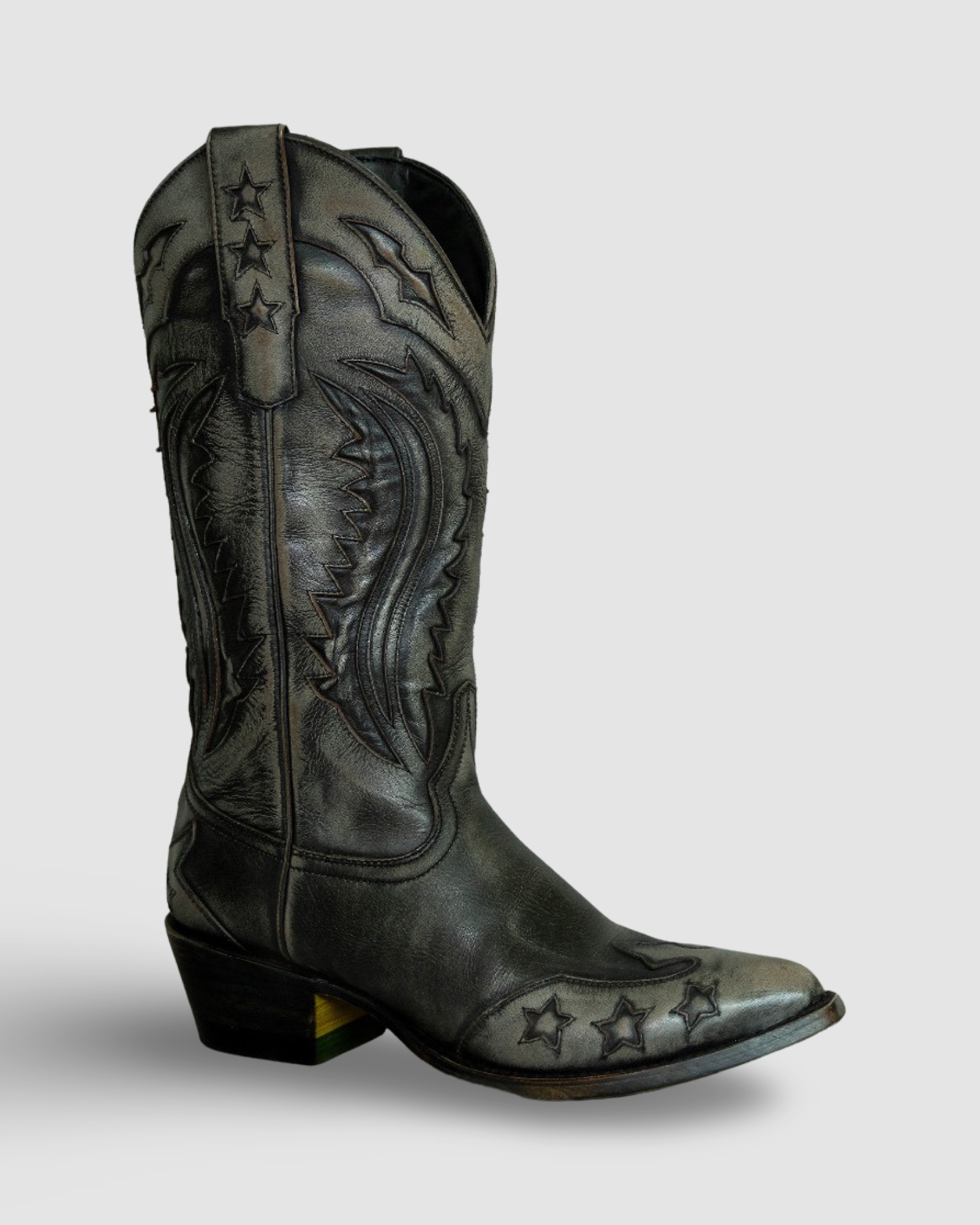 This 14 ́ ́tall handmade boots feature a stars and our distinctive golden sole.